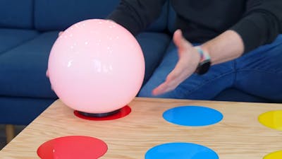Para este vídeo, Benedetto construiu três dispositivos diferentes. A primeira é uma lâmpada LED RGB, controlada por uma placa Matty32 personalizada, que muda de cor para combinar com o ponto onde está. O segundo é um reprodutor de música com DFRobot DFPlayer Mini, que reproduz músicas amarradas aos pontos.