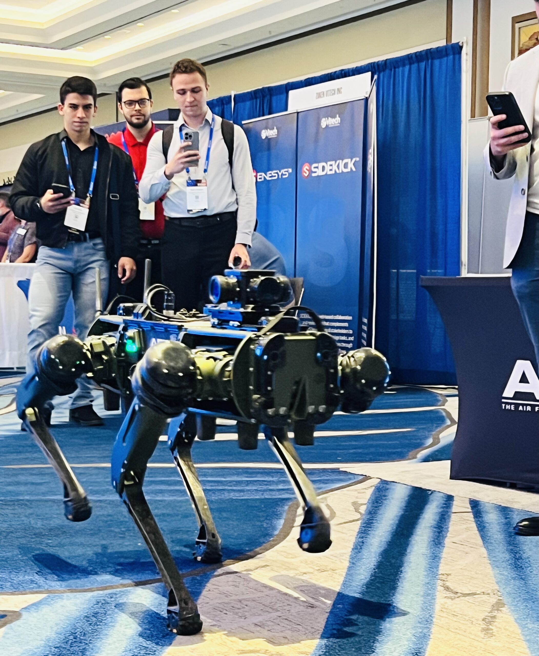 RoboDog caminhando pelos corredores do AIAA SciTech Discussion board 2026. Imagem cortesia de 3DPrint.com.