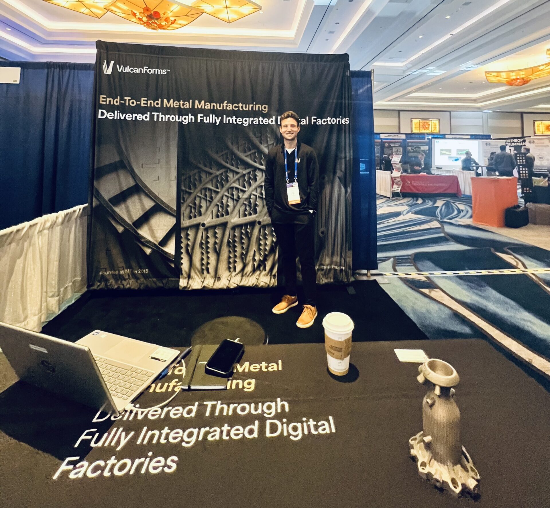 Estande da VulcanForms no AIAA SciTech Discussion board 2026. Imagem cortesia de 3DPrint.com.