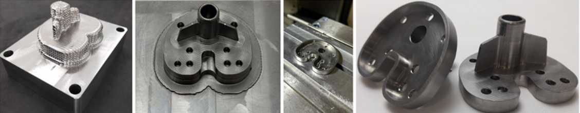 Usinagem a partir de uma pré-forma de bandeja tibial, da empresa Bronces Jordá. Imagem cortesia de Meltio.