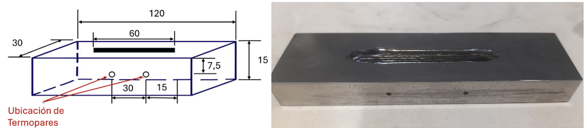 Testes preliminares de parede em Ti6Al4V, com furos na placa de construção utilizada para colocação de termopares. Imagem cortesia de Meltio.